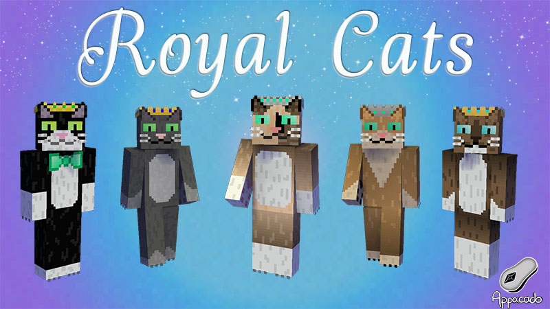 Appacado presets Royal Cats HD: Despite being glamorous, becoming a royal cat is extremely difficult and requires excellent grooming, hunting, and meowing skills. Seize the meowment and your place in hisstory to join their furmidable ranks. Purrfect for animal roleplay! -Handmade HD skins!-10 different kitties including colors such as calico, chimera, and tuxedo! . Royal Cats HD is a Minecraft Bedrock Marketplace Skin Packs (DLC) that can be purchased in Minecraft for 490 Minecoins.