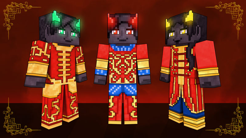 Demon, Holiday, Lunar New Year, Fantasy, Fantasy Creatures, Mystic, Red, Scary and information for parents: This skin pack is part of the Minecraft Marketplace and can be purchased through the Minecraft Bedrock Marketplace. If you have any questions about this product, please contact the GoE-Craft directly. For more information on parental controls in Minecraft, please visit the official Minecraft website to read the handy Minecraft Parents' Guide.