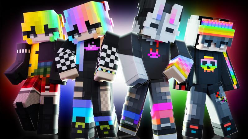 Rainbow Goth includes a bonus 12 Minecraft Skins! Play as Alex, Beth, Cal, Dany, Eli, Fred, Gina, Hila, Ian, Jeff, Kyle, Lia in Minecraft!
