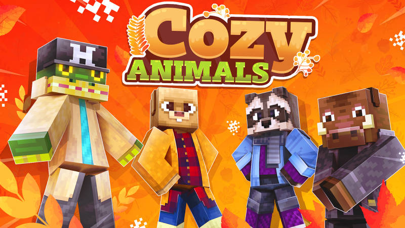 Cozy Animals includes a bonus 10 Minecraft Skins! Play as Cozy Crocodile, Snug Seal, Restful Raccoon, Mellow Moose, Warm Warthog, Comfy Chipmunk, Relaxed Rabbit, Warm Wolf, Blissful Bear, Elated Eagle in Minecraft!