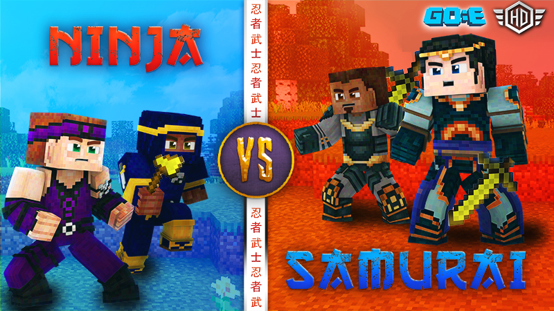 GoE-Craft presets Ninja vs Samurai: Set up an ultimate warrior showdown with Ninja vs. Samurai skins. Engage in epic battles role-playing with friends as masked and hooded ninjas ready to surprise your enemies and attack with katana swords. Take the side of a Japanese lord and defend the city as a worthy samurai. With armor and helmet, you can defeat anyone! Stealth vs. nobility 16 lethal HD skins. Ninja vs Samurai is a Minecraft Bedrock Marketplace Skin Packs (DLC) that can be purchased in Minecraft for 160 Minecoins.